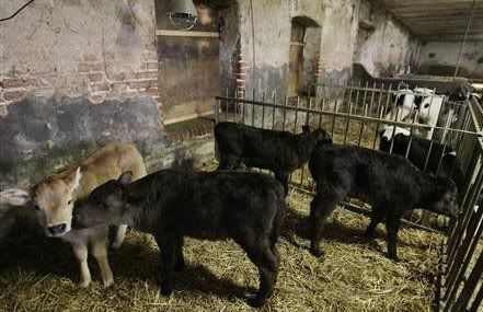 Chocolate-colored Yoko, Waghino and Hirino, stumbling in their stall on a farm just south of Milan, are about a month old and are the first Wagyu calves to be born in Italy. They come from embryos imported from Australia.