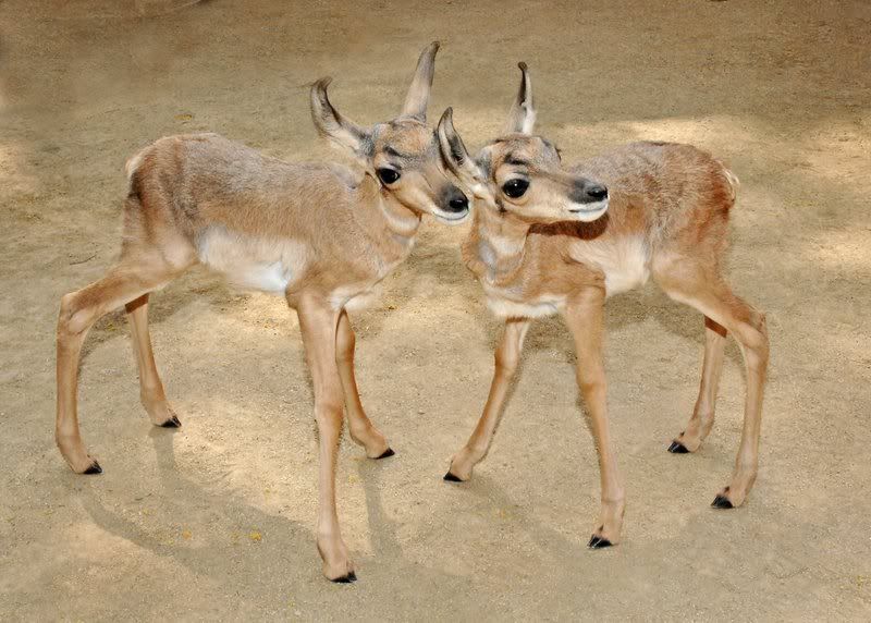 The parents of these two healthy boys were just fawns themselves when they arrived at the L.A. Zoo in July of 2006. These pronghorns originally came here from a breeding center in Mexico and are the first of their species to be on exhibit outside of their home country. The older pronghorns are located in the North American section of the Zoo.